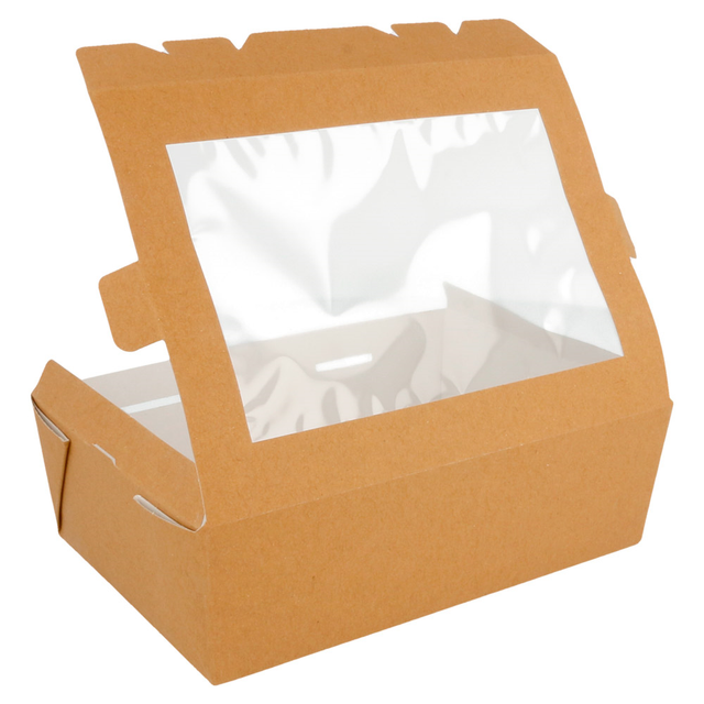 CAJA ENSALADA RECT. CON VENTANA 1 L.12x17x5,5 MARRON (25 un)